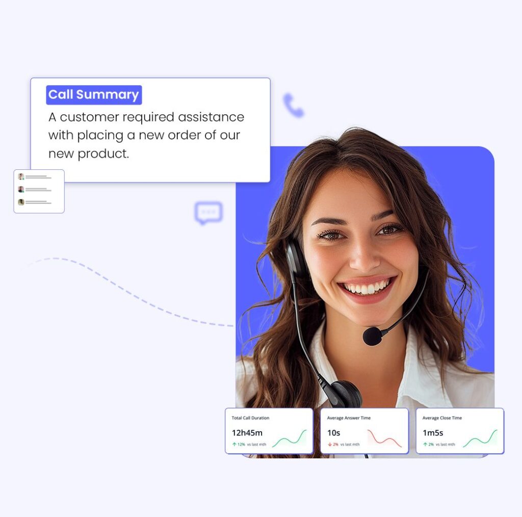 Ensure you always have a complete record of your conversations. With auto-generated, bulleted summaries and transcriptions, every call is saved directly to your customers’ profiles for easy reference.